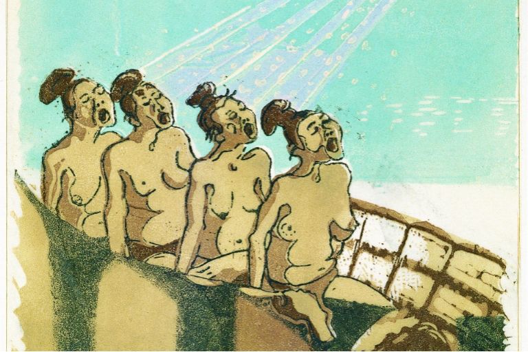 In Lynge's imagery, you encounter the magnificent Greenlandic nature, the people and not least the characters from Greenlandic legends and myths. To understand himself as a Greenlander, he believed that you had to know your own background in a broad sense - from the old legends and myths to the arrival of Hans Egede and up to the present day. The Greenlandic landscape, the Greenlandic stories, the Christian faith and the human being merge into one in Lynge's works. He was inspired by Grundtvig and the romantic idea that God is also present in the pre-Christian pagan faith. Like Grundtvig, Lynge rewrote the past by inscribing an already inherent Christian faith in a pre-Christian era. Despite Lynge's seemingly retrospective motifs, taken (but also rewritten) from Greenlandic mythology, Lynge's works had a future-orientated aim in terms of strengthening Greenlandic identity and national feeling.